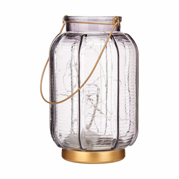 Farol LED Rayas Gris Dorado Vidrio 13,5 x 22 x 13,5 cm (6 Unidades)
