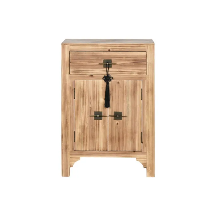 Mesita de Noche Home ESPRIT Negro Natural Madera de abeto Madera MDF 45 x 34 x 66 cm