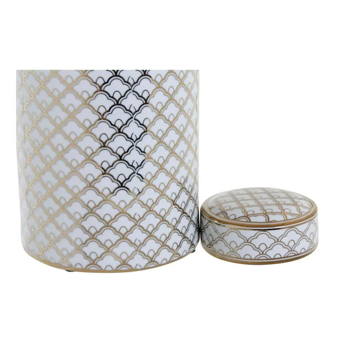 Jarrón DKD Home Decor 18 x 18 x 30,5 cm Porcelana Dorado Blanco