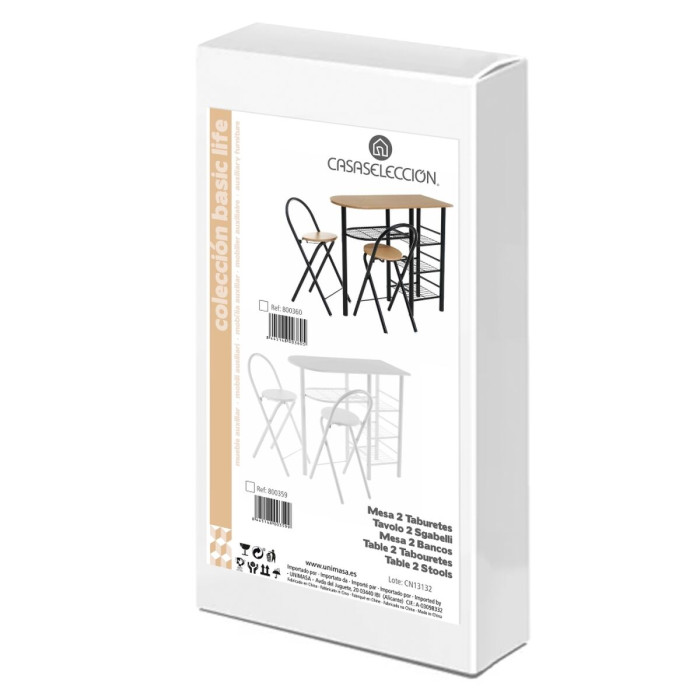 Conjunto de Mesa con 2 Sillas Negro Natural 100 x 74 x 88 cm