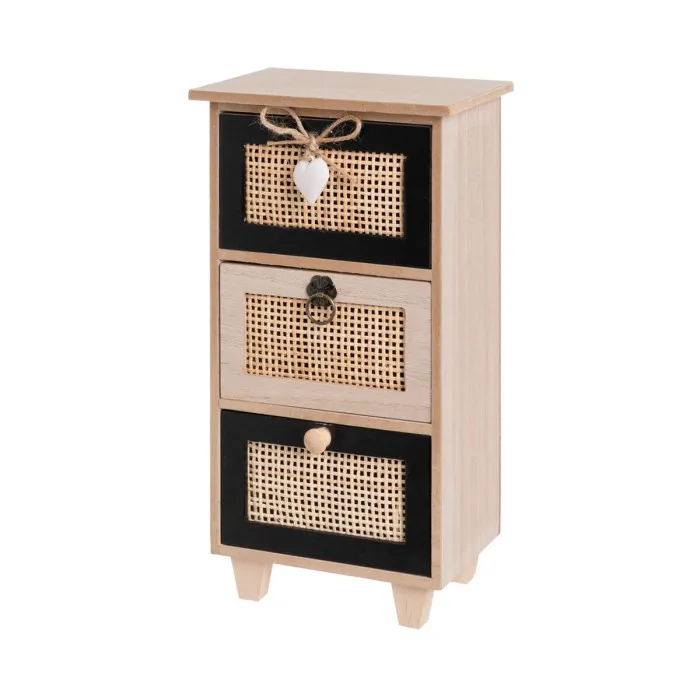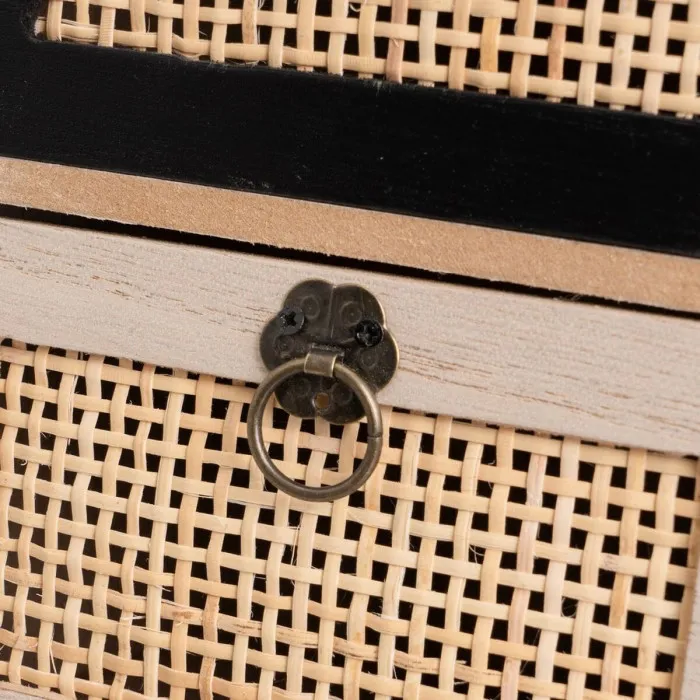 Caja-Joyero HEARTS Blanco Negro Natural Caña Plástico Madera MDF 17 x 11 x 32 cm