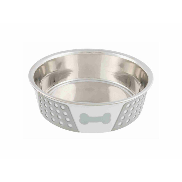 Comedero para Perro Trixie Blanco Gris Silicona Acero Inoxidable 1,4 L
