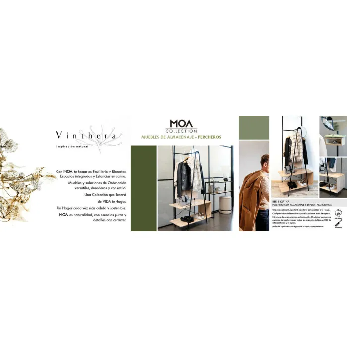Perchero con espejo Vinthera Moa Negro Beige Metal Madera MDF 76 x 180 x 40 cm