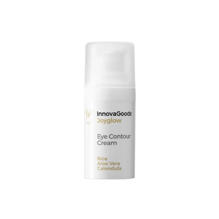 El contorno de ojos Joyglow InnovaGoods Rice previene la aparición de arrugas, bolsas y ojeras para lucir una mirada radiante y luminosa. Ingredientes naturales. PA: extracto de arroz, caléndula, aloe vera, aceite de argán, ácido hialurónico, etc.