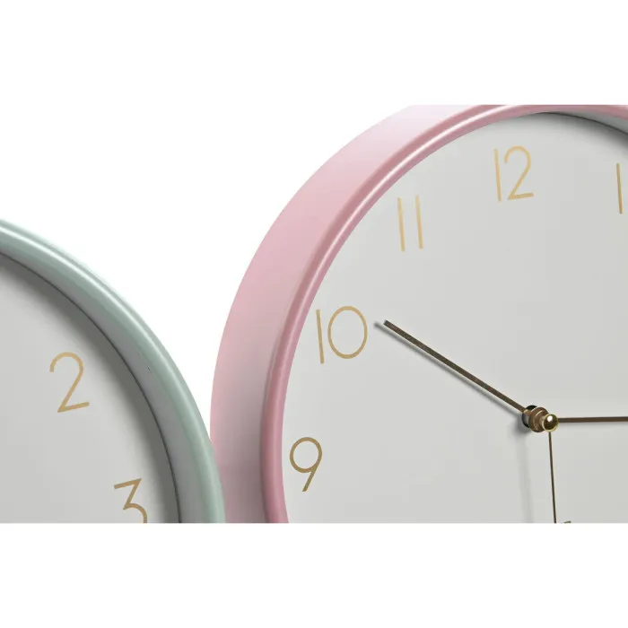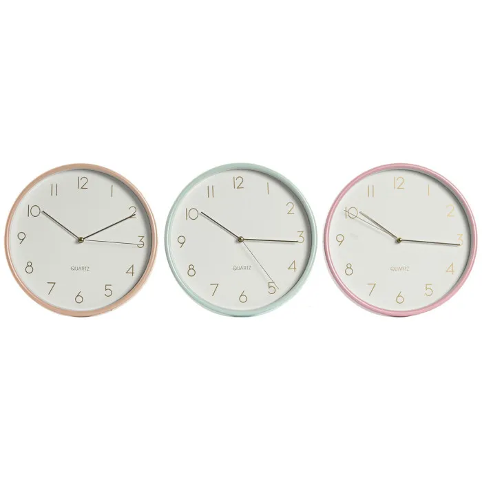 Reloj de Pared Home ESPRIT Coral Menta Lila PVC 25,5 x 4,3 x 25,5 cm (3 Unidades)