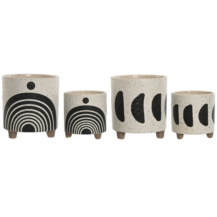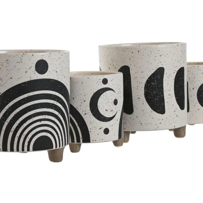 Set de Maceteros Home ESPRIT Blanco Negro 13 x 13 x 15 cm (2 Unidades)
