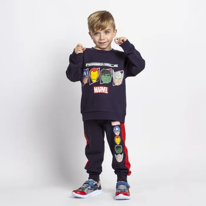 Este estiloso chándal azul oscuro presenta elementos de diseño únicos que atraen a los niños, lo que lo convierte en una excelente opción para el uso diario o eventos deportivos. El material de mezcla de algodón es suave contra la piel, perfecto para usarlo todo el día, permitiendo libertad de movimiento que es esencial para los niños activos. La marca de Los Vengadores agrega personalidad y emoción al conjunto, haciendo que tu hijo se sienta como un superhéroe en sus aventuras. Además, el chándal es fácil de mantener, asegurando que se mantenga fresco y vibrante después de múltiples lavados, ¡ideal para los niños a quienes les encanta jugar duro!