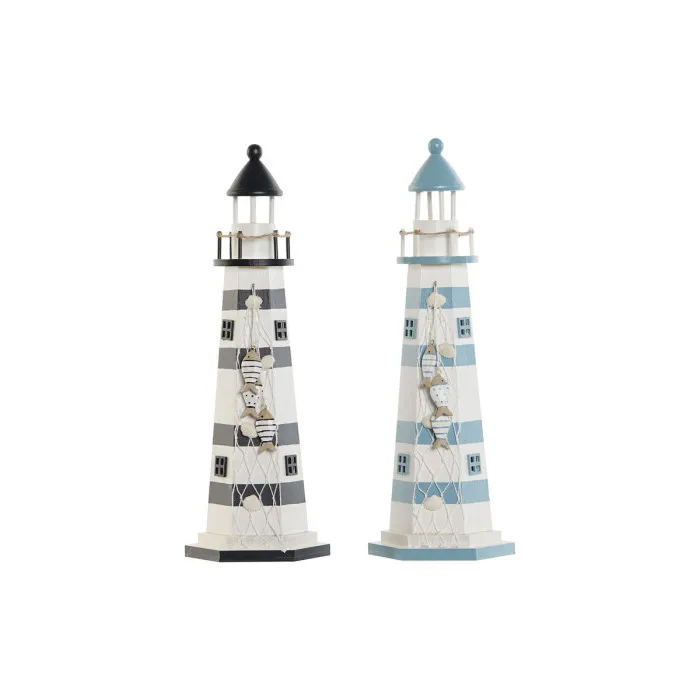 Decoración luminosa Home ESPRIT Madera Marinero Faro 14 x 14 x 40 cm (2 Unidades)