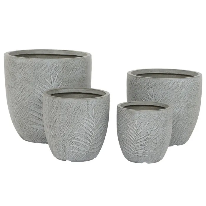 Set de Maceteros Home ESPRIT Gris claro Fibra de Vidrio Magnesio 44 x 44,5 x 43 cm (4 Unidades)