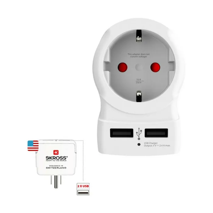 Adaptador de Corriente Skross 1500281 USB x 2 Europeo Estados Unidos