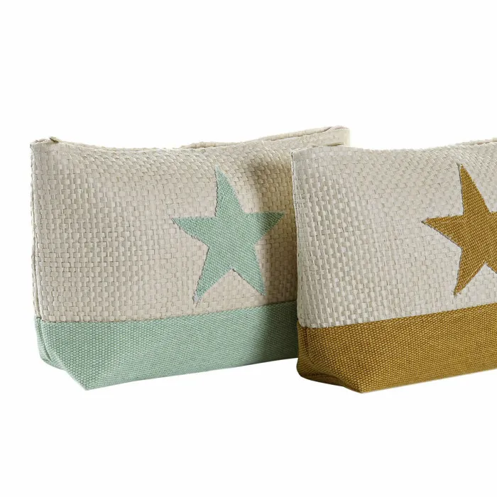 Neceser DKD Home Decor Natural Menta Estrella Mostaza Mediterráneo (25 x 6,5 x 16 cm) (2 Unidades)
