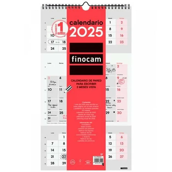 Calendario de pared Finocam Papel 2025 23,6 x 43 cm