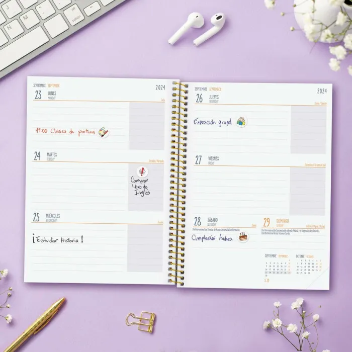 Agenda Finocam 4º SVH Morado Multicolor Cuarto 15,5 x 21,2 cm 2024-2025