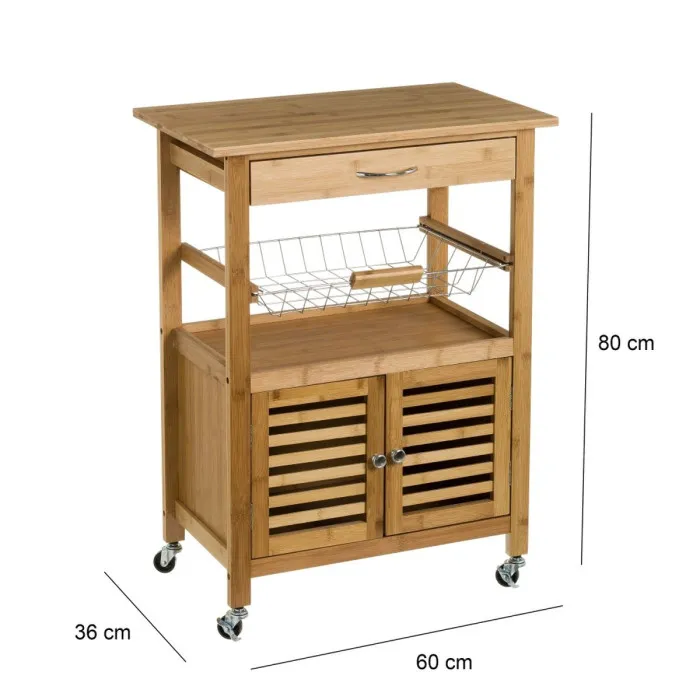 Carrito Verdulero Natural Metal Bambú 60 x 36 x 80 cm