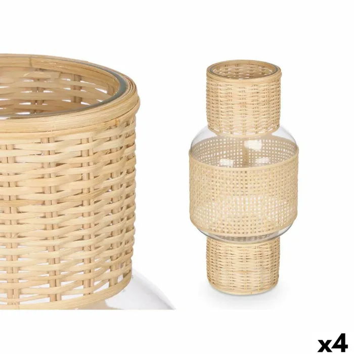 Portavelas SG-29652 Transparente Natural Vidrio Ratán 18 x 38 x 18 cm (4 Unidades)