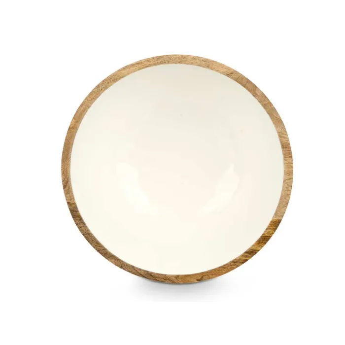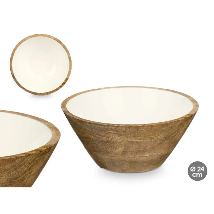 Cuenco MALI-701 W Blanco Esmalte Madera de mango 25 x 10,3 x 25 cm (6 Unidades)