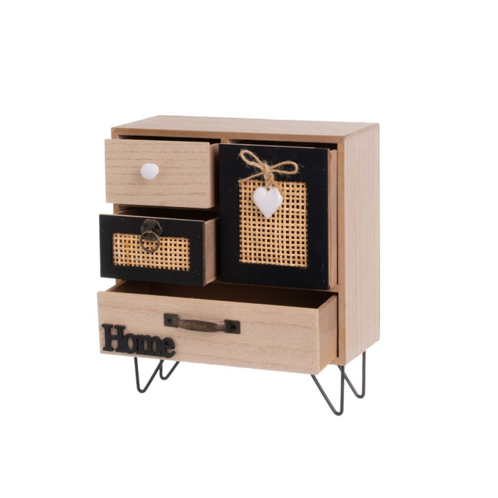 Caja-Joyero HEARTS Blanco Negro Natural Madera Caña Plástico Madera MDF 22 x 10 x 25 cm