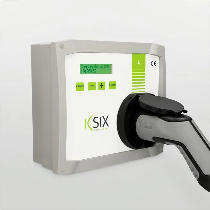 Nuestro cargador de coche Policharger KSIX EVHome+ SC, fabricado y desarrollado en colaboración con Policharger, es un cargador monofásico de hasta 7,4Kw con conector tipo socket hembra T2, compatible con todos los vehículos con conector Tipo 2 y Tipo 1 (cable adaptador T1-T2). Se instala fácilmente y ofrece un uso extremadamente sencillo e intuitivo para optimizar la carga del vehículo eléctrico. Además, cuenta con un sistema de bloqueo por contraseña y combinación de teclas.