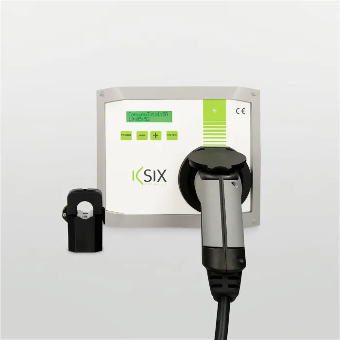 El cargador Policharger KSIX permite ajustar la potencia de carga hasta 7,4 kW en cada momento a la potencia disponible de la vivienda sin rebasar la potencia máxima contratada. Se pueden interconectar hasta 50 cargadores en un edificio sin rebasarla. Además, la potencia entre todos los cargadores y la demanda de los diferentes VE se pueden ajustar de forma optimizada. Incluye medidor de potencia (pinza toroidal).