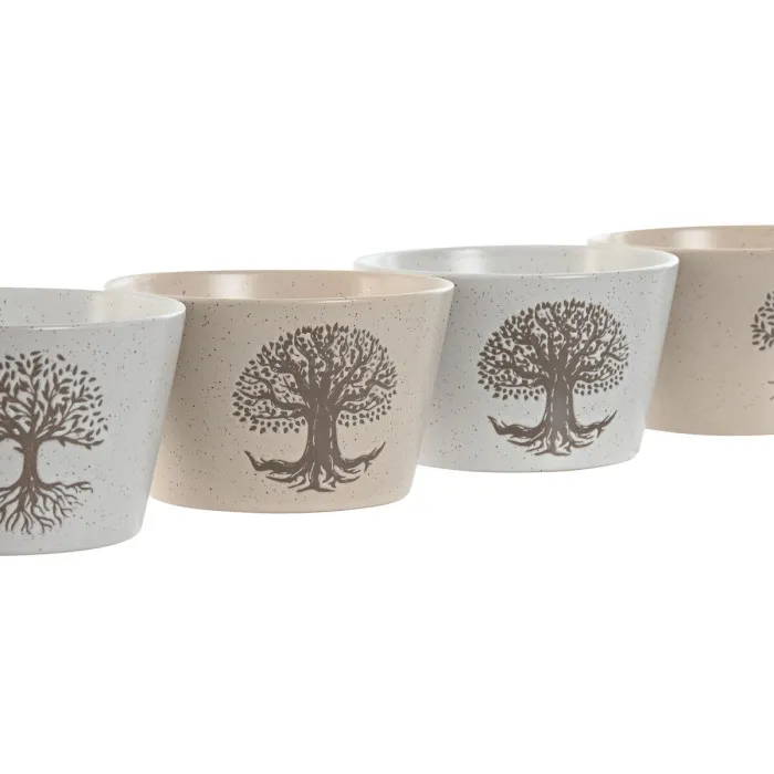 Cuenco Home ESPRIT Blanco Beige Gres 570 ml 13 x 13 x 8 cm (4 Unidades)