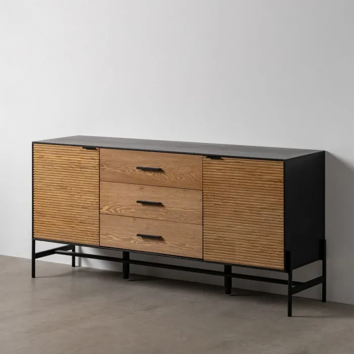 Aparador ORLEANS Negro Natural Hierro Madera MDF 164 x 40 x 75 cm