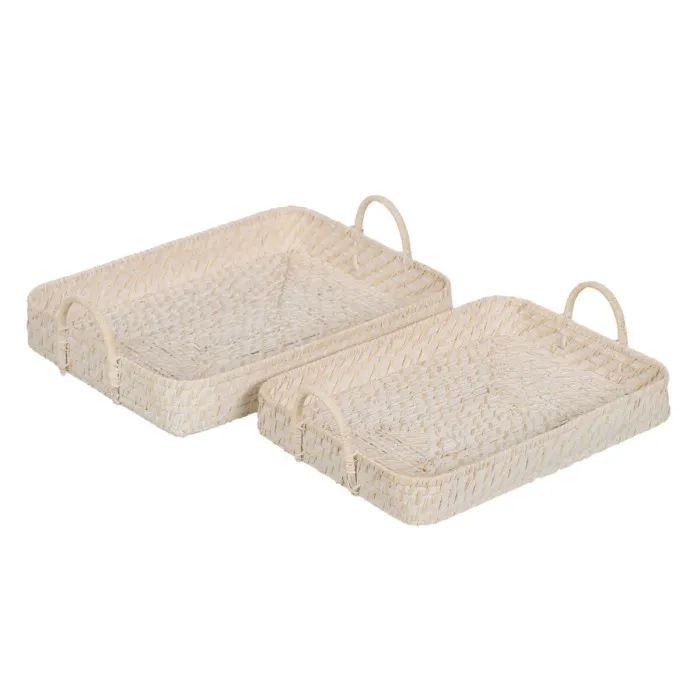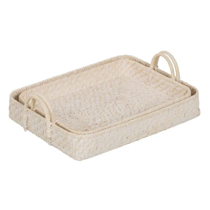 Bandeja Blanco Bambú Ratán 45 x 34 x 13 cm (2 Unidades)