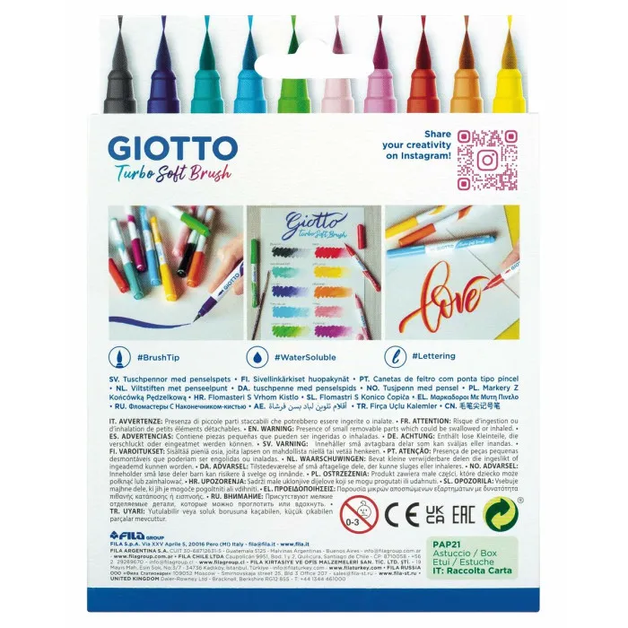 Set de Rotuladores Giotto Turbo Soft Brush Multicolor Estuche Pincel 10 Piezas