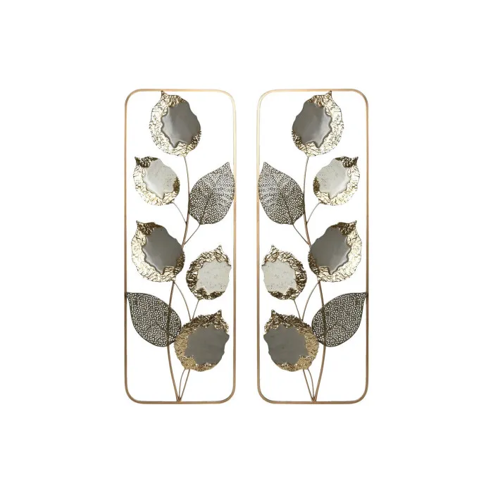 Decoración de Pared Home ESPRIT Gris Dorado Moderno Flor 31 x 2,5 x 89,5 cm (2 Unidades)