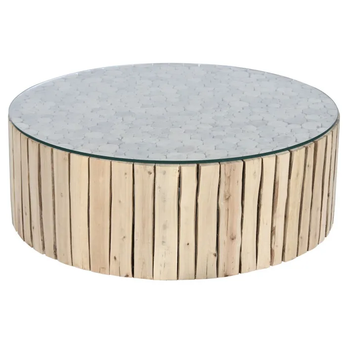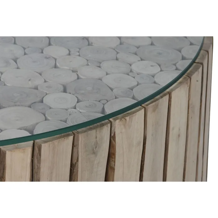 Mesa de Centro Home ESPRIT Natural Cristal Madera de eucalipto 90 x 90 x 30 cm