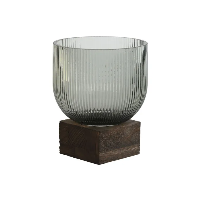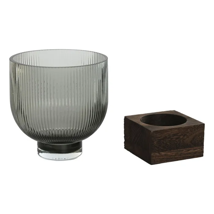 Jarrón Home ESPRIT Marrón Gris Madera Cristal Moderno 16 x 16 x 20 cm