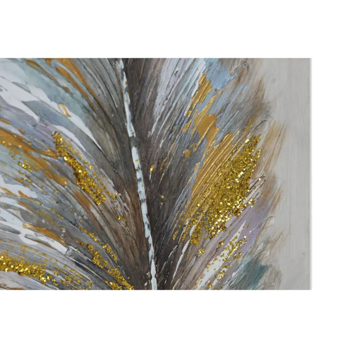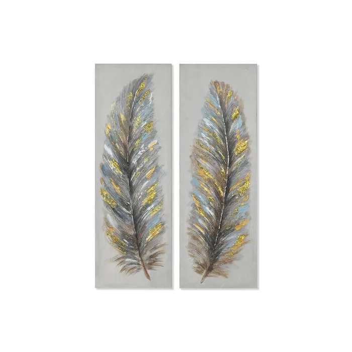 Cuadro Home ESPRIT Azul Dorado Lienzo Madera MDF Plumas Tradicional 30 x 3 x 90 cm (2 Unidades)