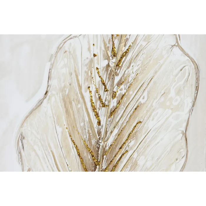 Cuadro Home ESPRIT Blanco Dorado Lienzo Madera MDF Hoja de planta Romántico 30 x 2,5 x 60 cm (2 Unidades)