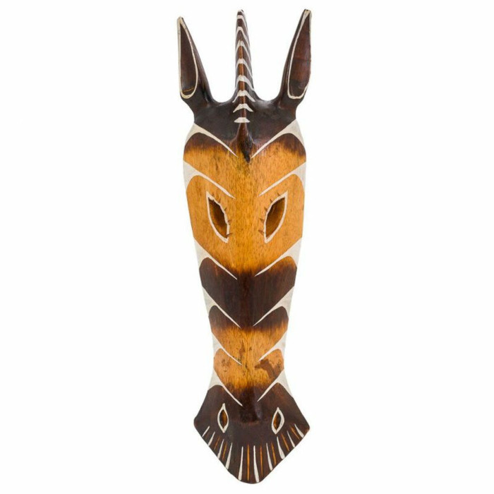 Figura Decorativa Alexandra House Living Blanco Marrón Madera Máscara 4 x 50 x 12 cm