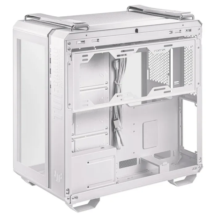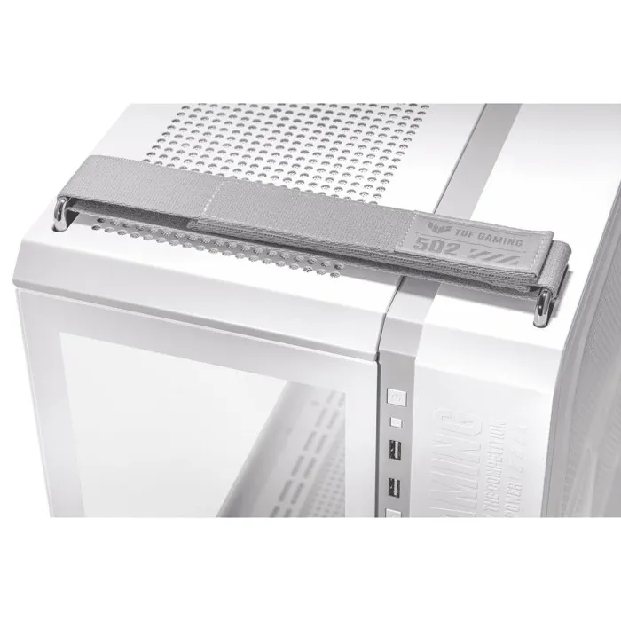 TUF Gaming GT502 Dividido justo como necesitas Chasis de doble cámara El TUF Gaming GT502 configura zonas de refrigeración independientes para la CPU y la GPU. Vista panorámica Los paneles de vidrio templado proporcionan una vista tintada discreta para presumir de tu equipo. Panel frontal con USB de tipo C de alta velocidad El panel frontal cuenta con un puerto USB 3.2 Gen 2 de tipo C listo para velocidades de transferencia de hasta 10 Gbps. Paneles laterales sin herramientas Los paneles laterales se pueden retirar con solo pulsar un botón oculto en la parte posterior del chasis. DIVIDIDO JUSTO COMO NECESITAS Flexible, escalable y dividido justo como necesitas: el TUF Gaming GT502 incorpora su preciado hardware en la parte delantera y te cubre las espaldas con un montón de opciones de refrigeración para mantener la temperatura bajo control y alcanzar el máximo rendimiento. Abróchate el cinturón y prepárate para verlo despegar. ENFRIAR O GUARDAR Hay un soporte de 360 mm en la cámara trasera que puede llevar combinaciones de radiador y ventilador o tres dispositivos de almacenamiento. PANELES LATERALES SIN HERRAMIENTAS RESTRICCIONES PARA LOS DEDOS El TUF Gaming GT502 continúa con sus optimizaciones para los amantes de ordenadores a medida con paneles laterales que se pueden quitar con solo presionar un botón oculto en la parte posterior del chasis. VISTA PANORÁMICA ATRAE TODAS LAS MIRADAS Los paneles de cristal templado en la parte delantera y lateral proporcionan una vista tintada y discreta de la cámara principal, para que tu equipo destaque y domine la habitación. PANEL FRONTAL CON USB DE TIPO C DE ALTA VELOCIDAD AL ALCANCE DE LA MANO Además de dos puertos USB-A, el panel frontal del TUF Gaming GT502 cuenta con un puerto USB 3.2 Gen 2 de tipo C listo para velocidades de transferencia de hasta 10 Gbps. ASAS DE TELA AL ESTILO TUF GAMING TEJE Y PROTEGE Dos asas duraderas y desmontables que pueden soportar hasta 30 kg (66 libras) hacen que sea mucho más fácil mover el chasis de un lado a otro, incluso cuando está lleno de hardware. DISEÑO COMPLETAMENTE MODULAR HASTA LOS HUESOS Tanto si prefieres una construcción modesta como si buscas una estación de combate totalmente equipada, el GT502 está preparado para responder a lo que necesitas. La mayoría de los paneles y soportes se pueden desmontar para facilitar la instalación del hardware: desmóntalo a tu gusto y monta tu ordenador ideal.