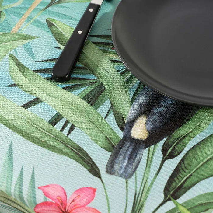 Una de las características destacadas de este mantel es su notable capacidad a prueba de manchas. Ya no tendrás que preocuparte por derrames accidentales arruinando tus preciados ajustes de mesa. El acabado resinado especial permite una fácil limpieza, haciendo que su mantenimiento sea muy sencillo. Simplemente lávalo a máquina a 30ºC, y para las manchas más difíciles, un rápido limpiado con un paño húmedo a menudo será suficiente. Solo recuerda evitar el secado a máquina para mantener el mantel en su mejor estado. Con un peso generoso de 300 g/m², este mantel no solo se siente lujoso, sino que también mantiene su forma maravillosamente durante el uso.