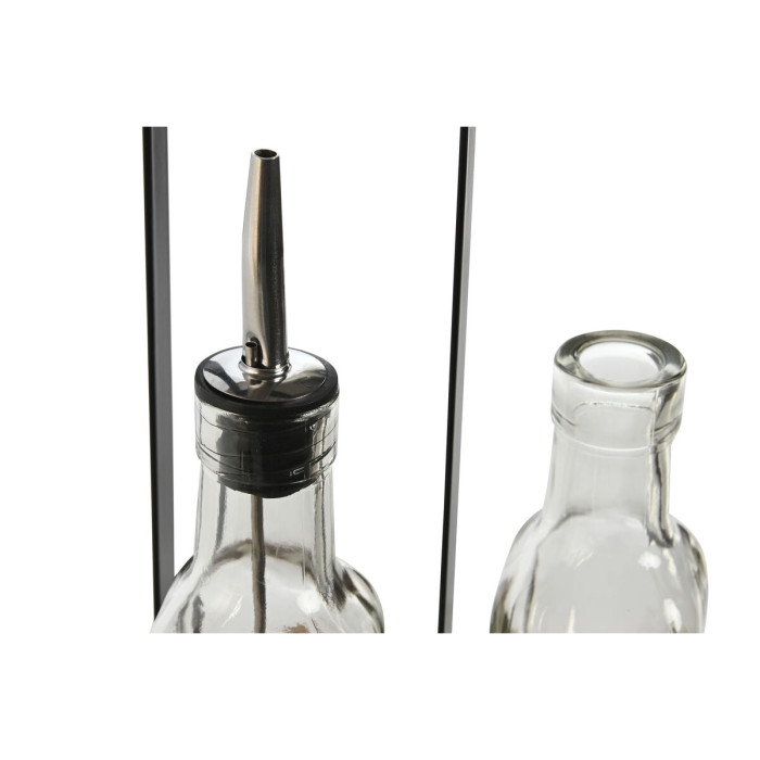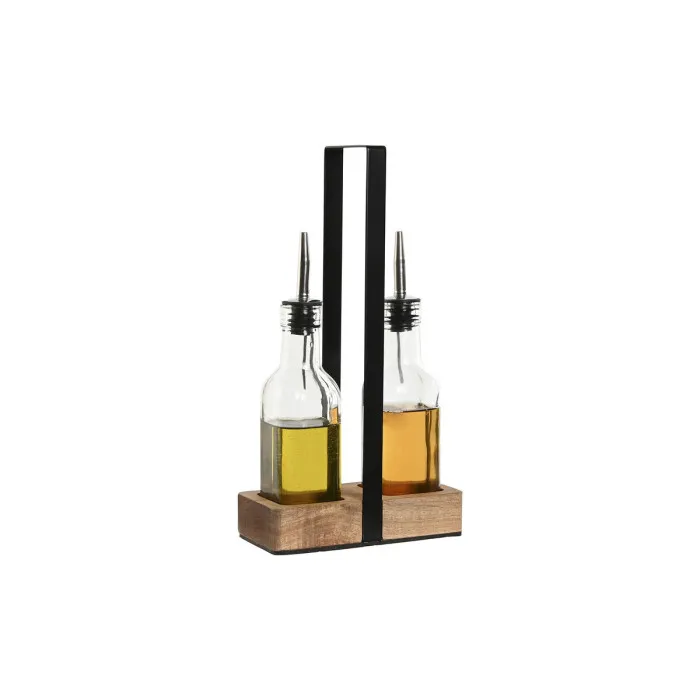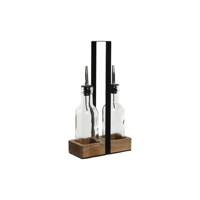 Set para Aliñar Home ESPRIT Negro Natural Cristal Madera de acacia 180 ml 15 x 7 x 28 cm