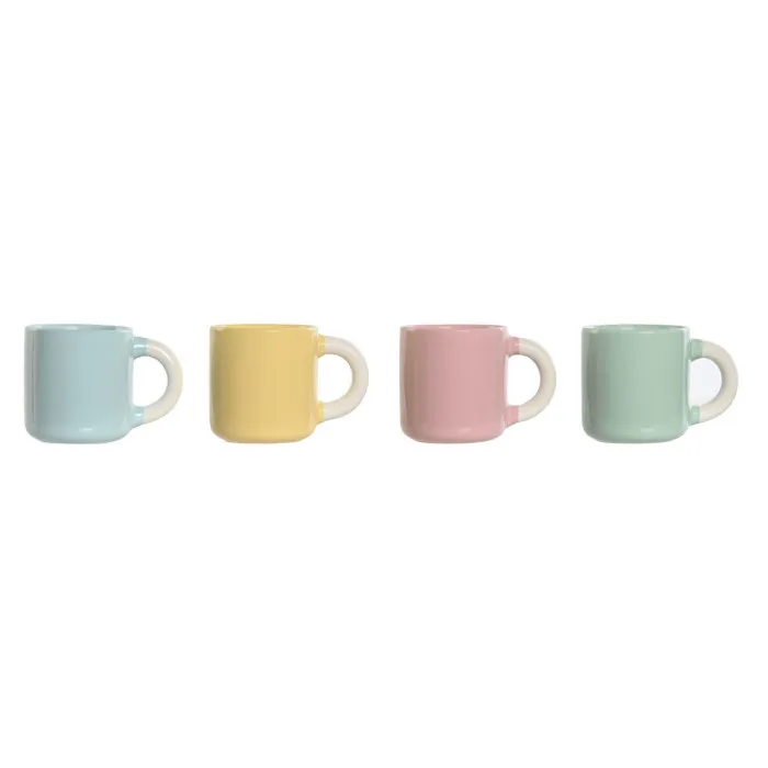 Juego de Tazas de Café Home ESPRIT Amarillo Azul Verde Rosa Porcelana 110 ml 4 Piezas