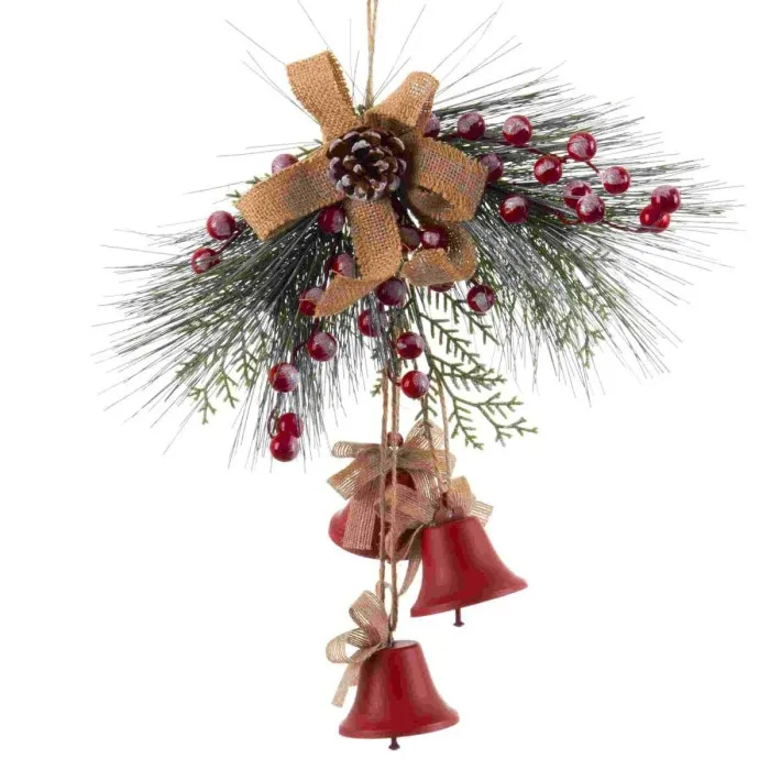 Adorno Navideño Rojo Multicolor Metal Plástico Fibra Campanas 36 x 6,5 x 42 cm