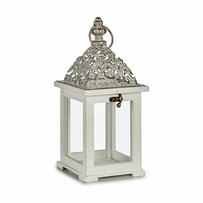 Farol Blanco Plateado Madera Metal 13 x 29 x 13 cm (6 Unidades)