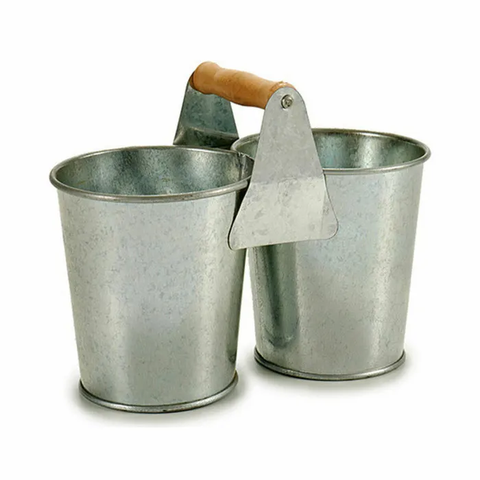 Macetero Ibergarden D60088-B Marrón Plateado Madera Zinc Doble 20 x 15 x 10,2 cm (24 Unidades)