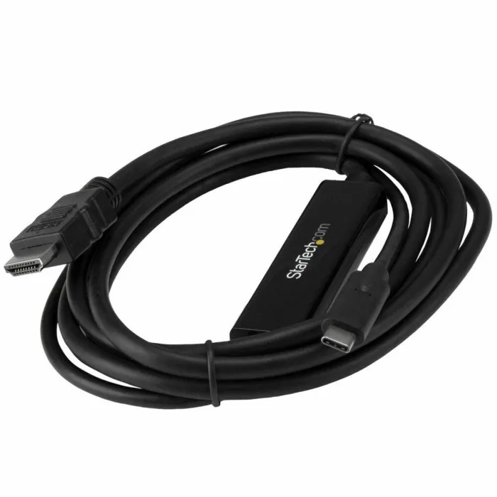 Este cable adaptador USB-C a HDMI constituye una solución práctica para la conexión directa de su dispositivo DisplayPort a través de USB Type-C con su monitor, televisor o proyector HDMI. El adaptador es compatible a distancias de hasta 2m y funciona con dispositivos USB-C compatibles con el modo Alt (alternativo) de DisplayPort, como los MacBook, ChromeBook Pixel y Dell XPS (modelos 15 y 13). También es compatible con puertos Thunderbolt 3. Instalación sin estorbo de cables Con 2 metros de longitud, este cable adaptador ofrece una conexión directa que elimina el exceso de adaptadores y cables, a fin de garantizar una instalación ordenada y profesional. Para instalaciones de menor longitud, también ofrecemos un cable USB-C a HDMI de 1m, lo cual permite elegir la longitud más adecuada de cable para su instalación. Sencilla conexión mediante USB Type-C Este cable adaptador se conecta fácilmente, a través del versátil y práctico puerto USB Type-C de su dispositivo. USB-C es un conector reversible, lo cual significa que no importa qué cara del conector se ve al insertarlo, ya que el adaptador siempre se conecta correctamente. Esto evita las frustraciones de insertarlo incorrectamente cuando conecte su ordenador a su estación de trabajo o a una estación de trabajo compartida en la oficina. Impresionante calidad de imágenes Con una resolución cuatro veces superior a la alta definición a 1080p, las imágenes de un televisor o monitor con calidad 4K le dejarán asombrado. El cable adaptador le permite aprovechar al máximo la capacidad de vídeo integrado en su conexión USB Type-C, para reproducir la asombrosa calidad de resolución Ultra HD en su pantalla 4K. El adaptador es retrocompatible con pantallas 1080p, lo cual garantiza que el adaptador también funciona con aplicaciones HD tanto en entornos domésticos, como de oficina. El modelo CDP2HDMM2MB está avalado por la garantía de 3 años de StarTech.com y con soporte técnico gratuito de por vida. Nota: Para que este adaptador funcione, su dispositivo equipado con USB-C debe ser compatible con vídeo (modo Alt (alternativo) de DisplayPort).