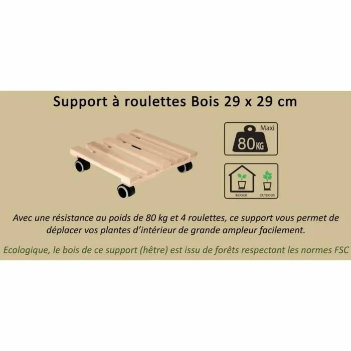 Soporte con Ruedas para Macetas EDA Madera 29 x 29 x 8 cm