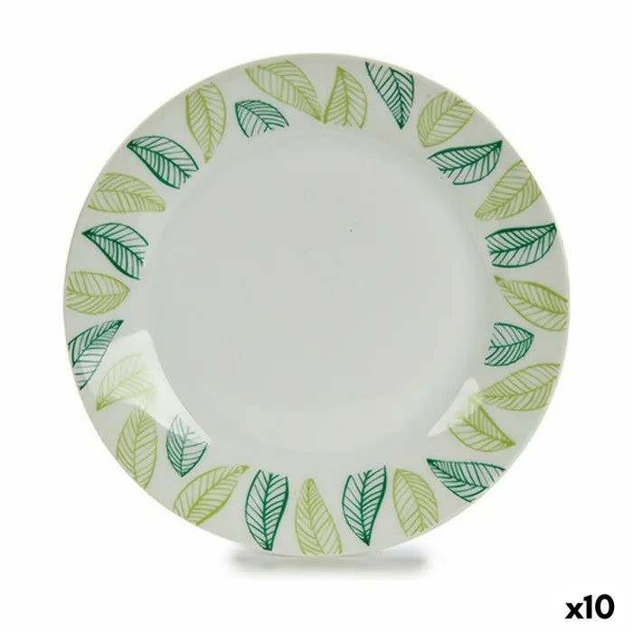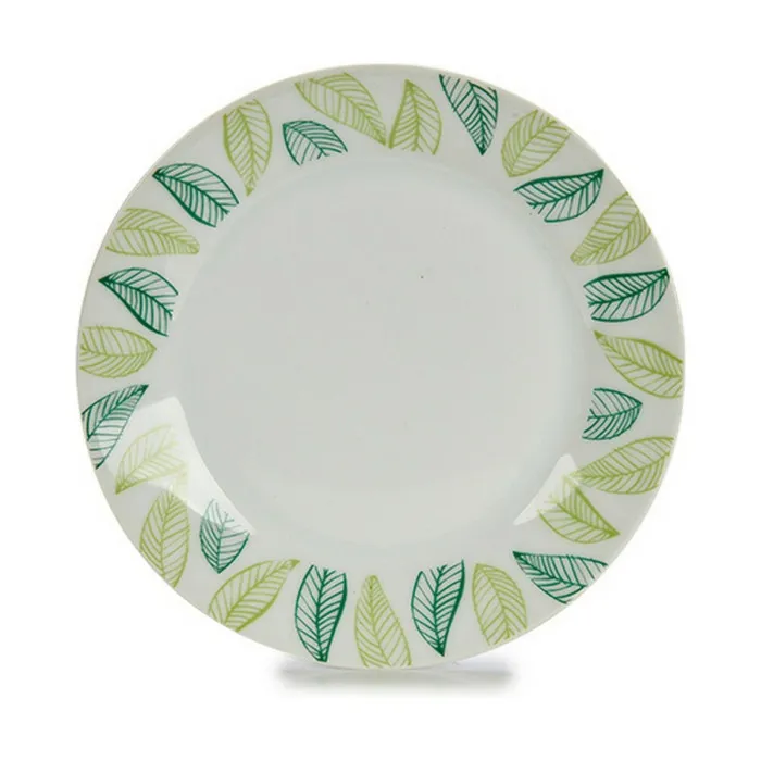 Plato de Postre Hojas Blanco Verde Ø 19 cm Porcelana (10 Unidades)