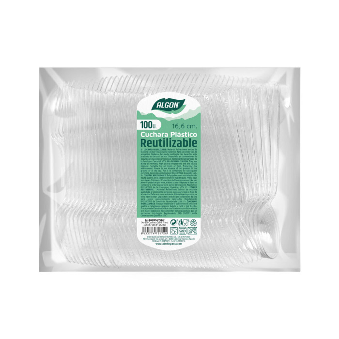 Set de Cucharas Algon Transparente Reutilizable 16,6 cm 100 Unidades