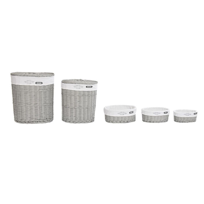 Juego de Cestos DKD Home Decor Blanco Gris Mimbre 51 x 37 x 56 cm 52 x 38 x 57 cm (5 Piezas)