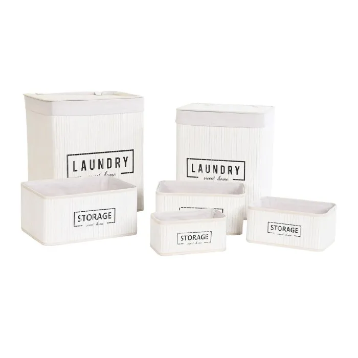 Juego de Cestos DKD Home Decor Blanco Bambú 40 x 30 x 46 cm (5 Piezas)
