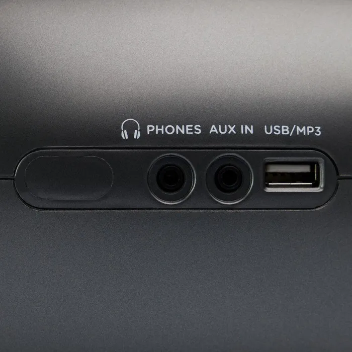 Asa de transporte, Reproductor MP3, Reproductor de casetes, Reproductor de CD, Radio FM, Conexión USB, Pantalla LCD, Entrada Aux, Altavoces incorporados