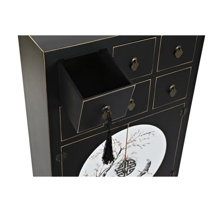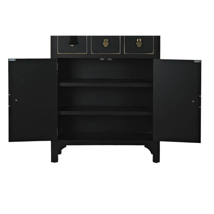Si quieres añadir un toque de originalidad a tu hogar, lo harás con Comoda DKD Home Decor Negra Dorada de Abeto MDF 63 x 28 x 101 cm. Esta exquisita pieza de mobiliario no solo cumple una función práctica, sino que también realza el atractivo estético de cualquier habitación que decore. La llamativa combinación de acabados negros y dorados le da a esta cómoda un aspecto sofisticado y elegante, convirtiéndola en una elección ideal para aquellos que aprecian una decoración del hogar única y estilosa. Su diseño oriental refleja una intrincada artesanía que resuena con una riqueza cultural, fusionando sin esfuerzo influencias tradicionales con necesidades modernas.