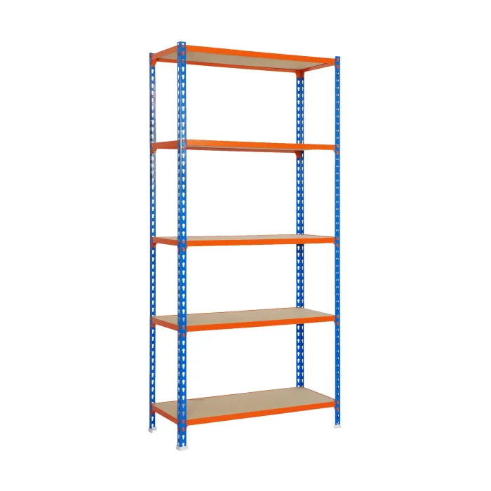 Con sus 5 robustas baldas de madera, esta estantería metálica proporciona una superficie sólida y fiable para almacenar una gran variedad de artículos. Cada balda puede soportar hasta 200 kg, lo que la convierte en una opción ideal para guardar herramientas pesadas en el taller de brico, cajas de archivo en la oficina, provisiones en el almacen, o incluso libros en una sala de estudio. La versatilidad de esta estantería metálica la hace adecuada para instalaciones domésticas y profesionales, desde pequeños trasteros hasta grandes almacenes.