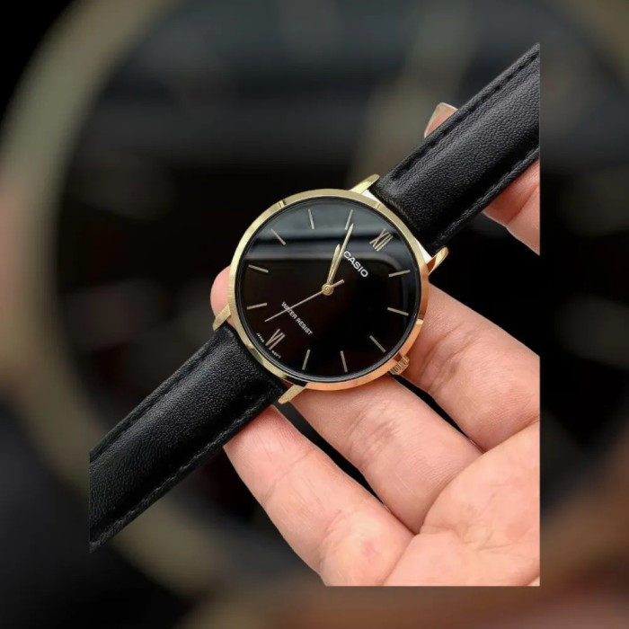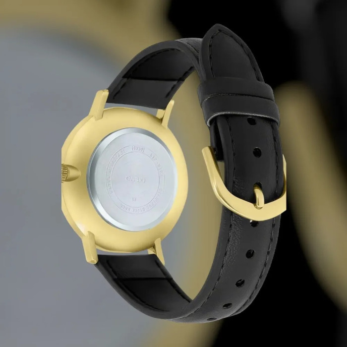 El Casio LTP-VT01GL-1B es un reloj femenino elegante y minimalista, diseñado para quienes valoran el estilo clásico y la funcionalidad diaria. Su fina caja dorada combina a la perfección con la esfera negra, creando un contraste sofisticado que se adapta tanto a looks formales como informales.